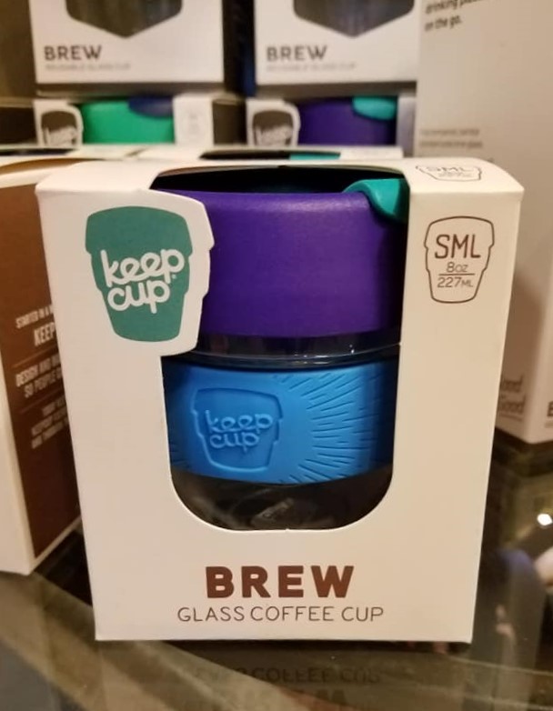 Now you need something to carry that latte around. One of my resolutions has been to reduce the amount of waste I create. The biggest contributor to the garbage in my trash can is takeaway cups, so I went looking for a travel mug that I liked. I knew I wanted one that wasn’t plastic, ceramic, or metal. I found KeepCups online at first, and I ordered one that way. They come in several sizes and colors ranging from 8oz to 16oz. The cups themselves are made of plastic or glass and have cork or silicone bands to protect your hands from the hot liquid inside. I took the first one I bought into Rusty Petunias Marketplace one day and they loved it so much that they started to carry them! So I went back and got the 12oz KeepCup as well. I love these cups because they keep your drink warm but allow it to cool off enough that you can start drinking it sooner. Stop and get your KeepCup at Rusty Petunias Marketplace—support a local business and make a small change that could have a big impact on our planet.