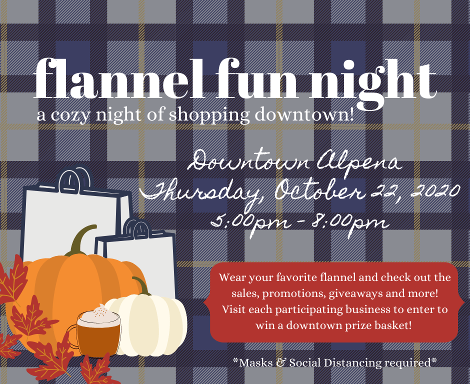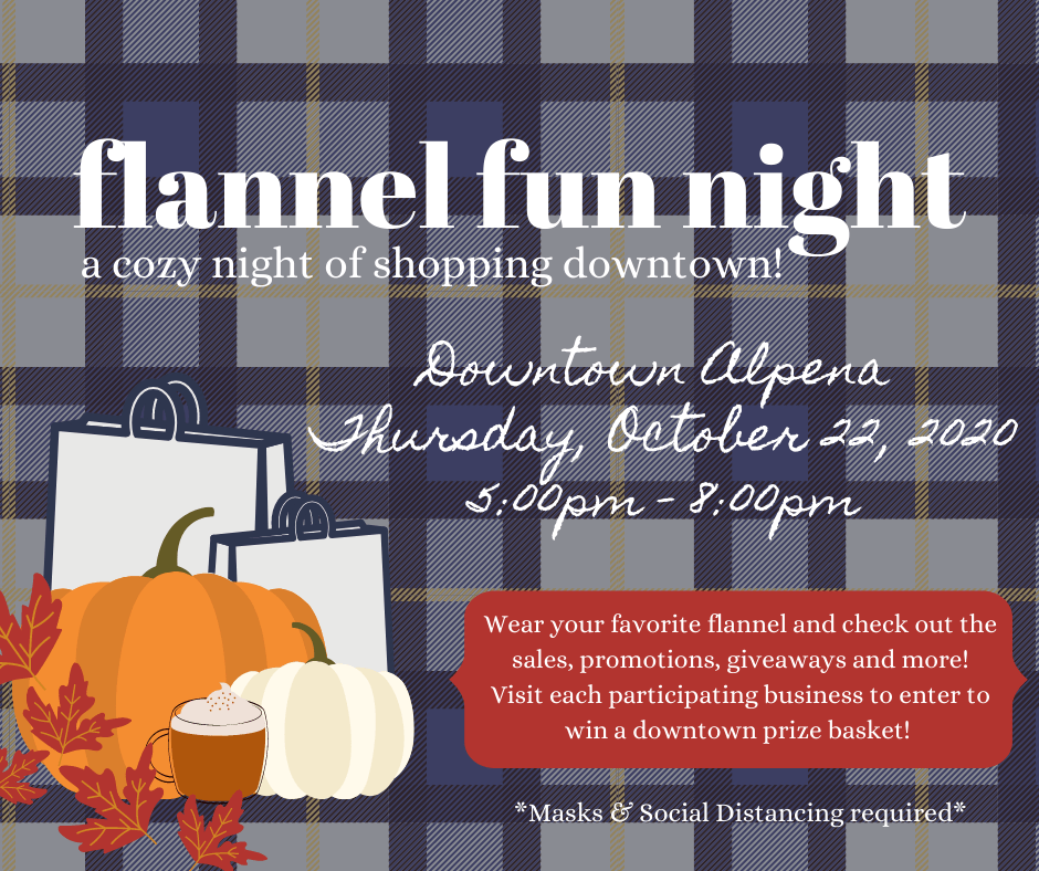 As you may have seen on Facebook, read in the Alpena News or heard on the radio, we’re collaborating with twenty downtown merchants to host Flannel Fun Night this Thursday from 5:00 pm to 8:00 pm! If you haven’t already, mark your calendars and get your favorite flannel outfit ready for this cozy night of downtown shopping.