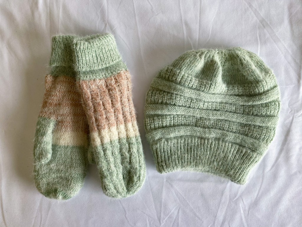 Myers’ Fashions Etc. | 136 W. Chisholm St. | Mint green and pink knit hat and mittens set