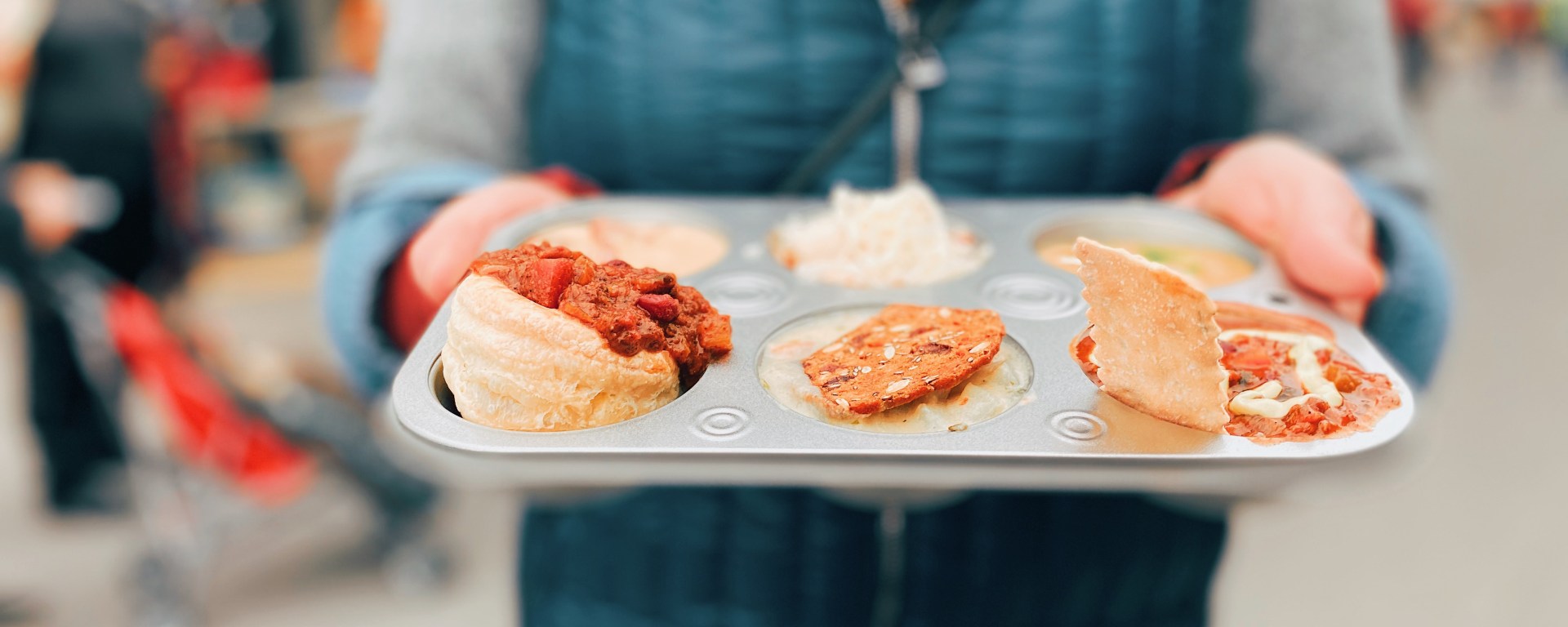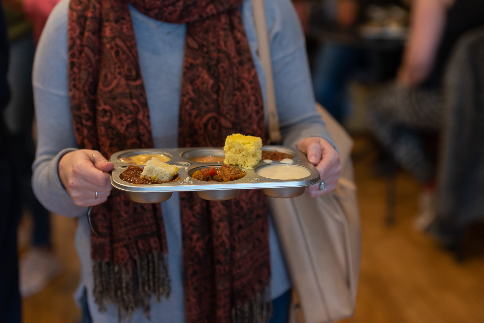 The event is also usually zero waste, utilizing muffin tins as tasting trays and metal spoons. DDA Staff and volunteers then usually spend hours washing the over three hundred muffin tins and even more spoons in the kitchen at one of the downtown churches.