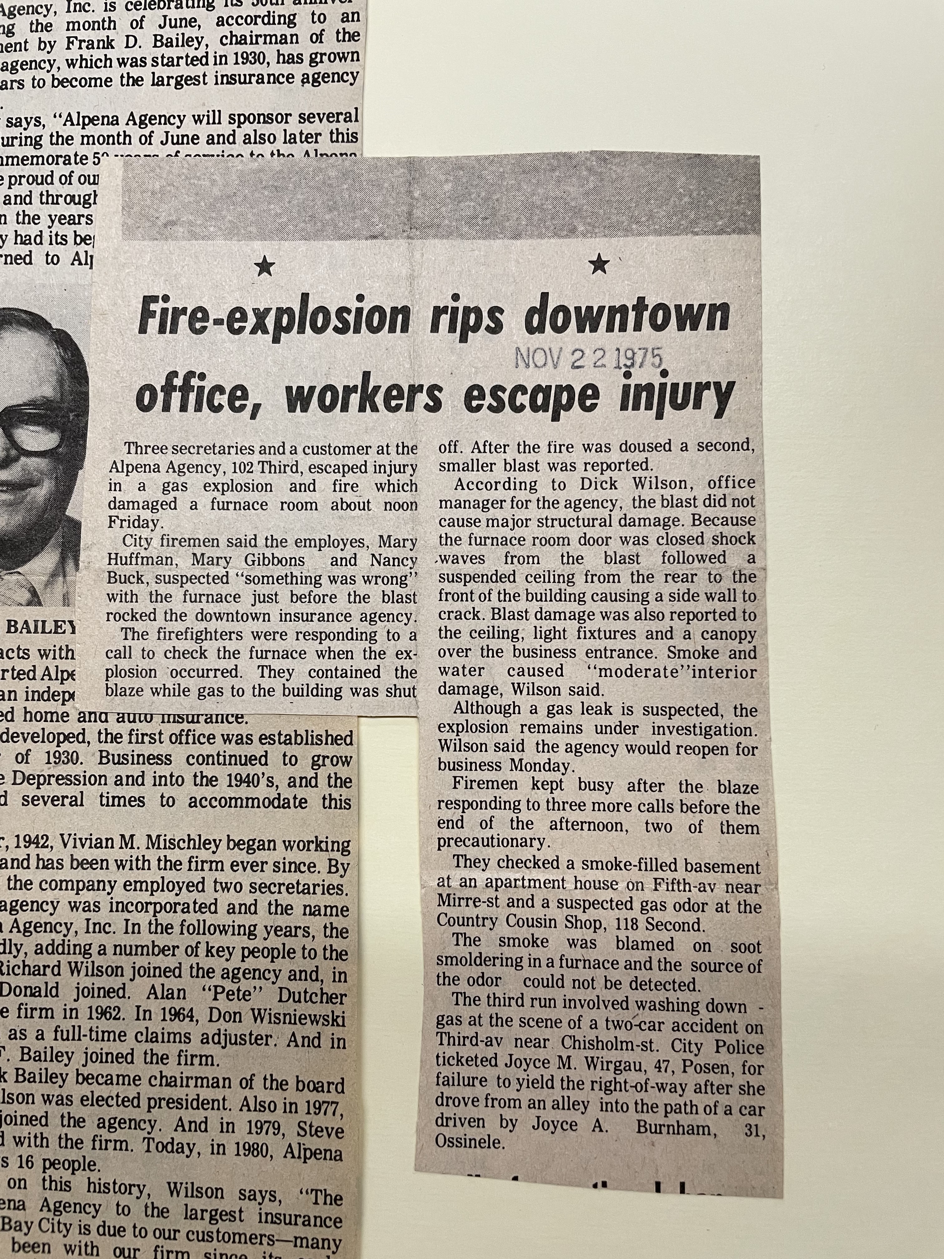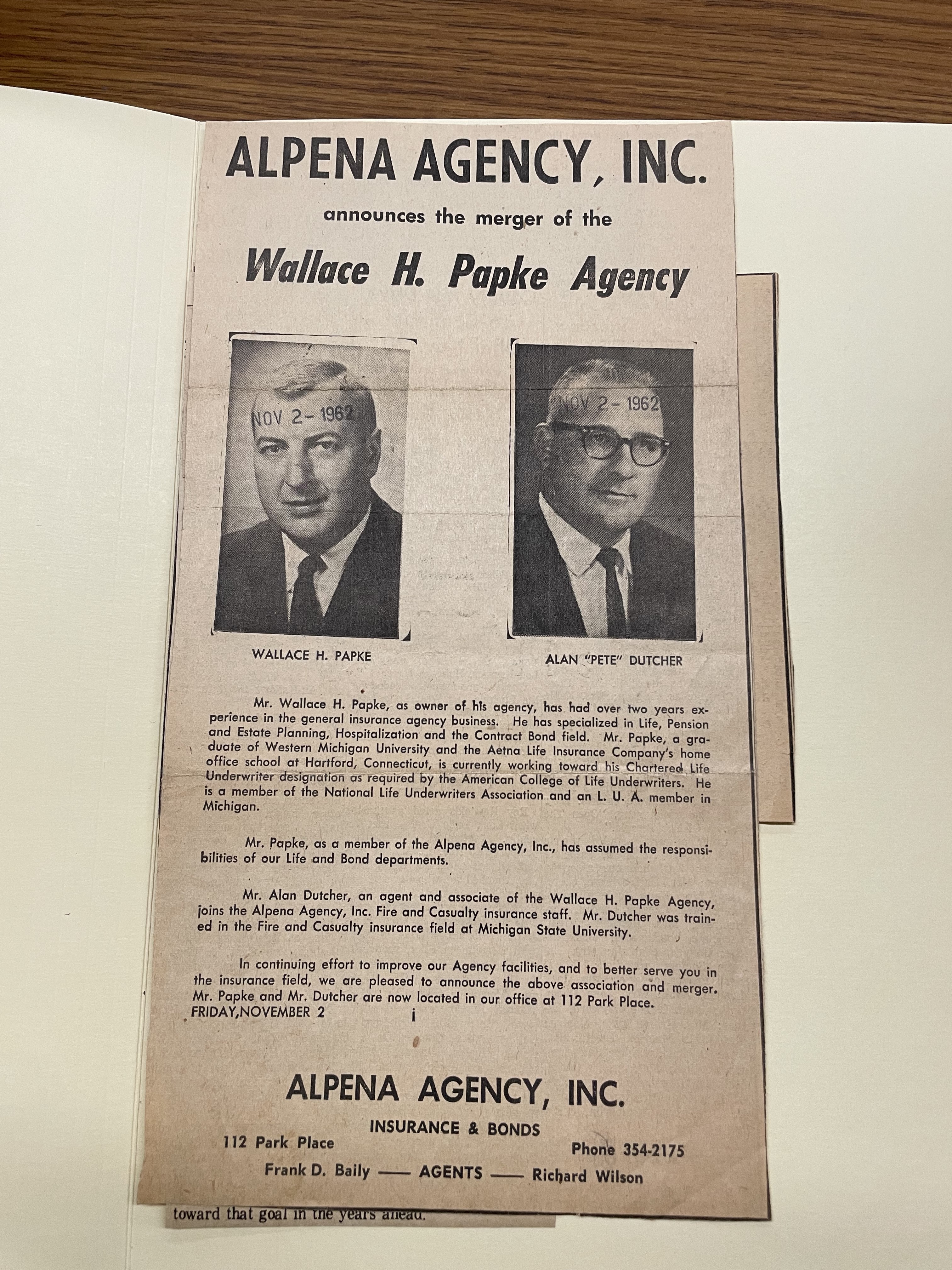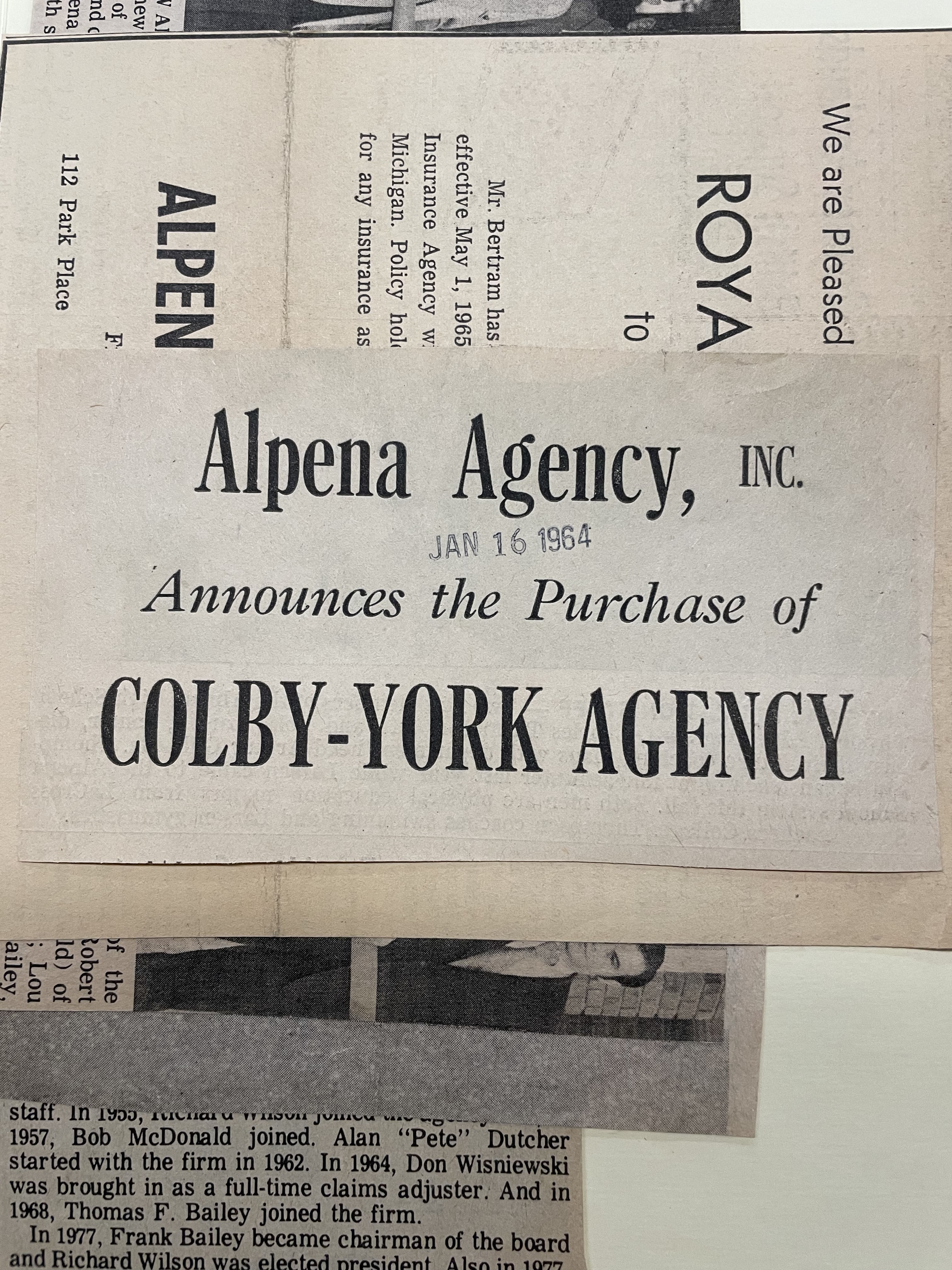 Since their opening in 1930, Alpena Agency has been a family owned and run insurance agency. Frank Bailey was the original owner of the agency and began it out of his home, spending his time going door to door to sell premiums and policies. Before coming back to Alpena, Mr. Bailey drove a cab in Detroit. He quit the cab business and moved into working in insurance. After a few years of walking and selling to the community, the agency expanded and moved officially to Downtown Alpena into an office that was located above where Cabin Creek Coffee is now. After serving in the Air Force as a fighter pilot in the Korean War, Frank Bailey’s son came to work with him. In the 60’s he took over. They switched locations to a building that used to be attached to PNC Bank, where their drive-thru windows now are. In 1972 they moved to their current location. They do the hard work and bring the best rates to the community of Alpena. Steve Wilson, the current owner and grandson of Frank Bailey, became involved in the agency in 1989. As their agency expanded, in 1992 they bought the old Jerry’s Printing that had been next door so that they could expand their office space. Around 1995, Steve’s brother, Pete, got involved and by 1997 he and Steve had bought the company and have been partners ever since. “We have people who buy insurance, and you have insurance companies, and we are definitely in the middle,” says Steve Wilson. They are truly a family-run company and are a wonderful part of connecting Alpena residents to their insurance needs. “We’re also a representative of the customer as an advocate in certain situations. We try to bring value through incredibly good service,” Steve says.