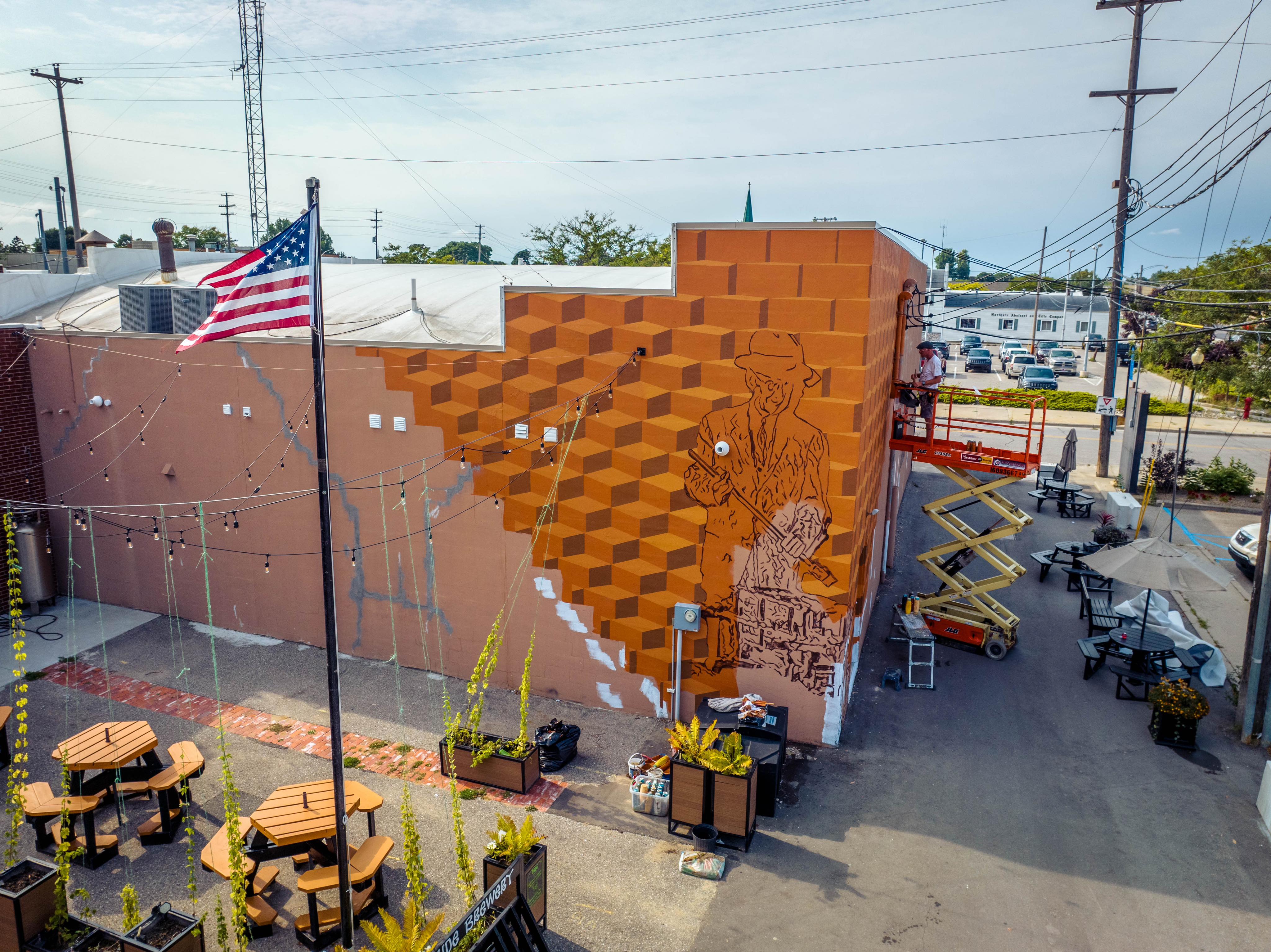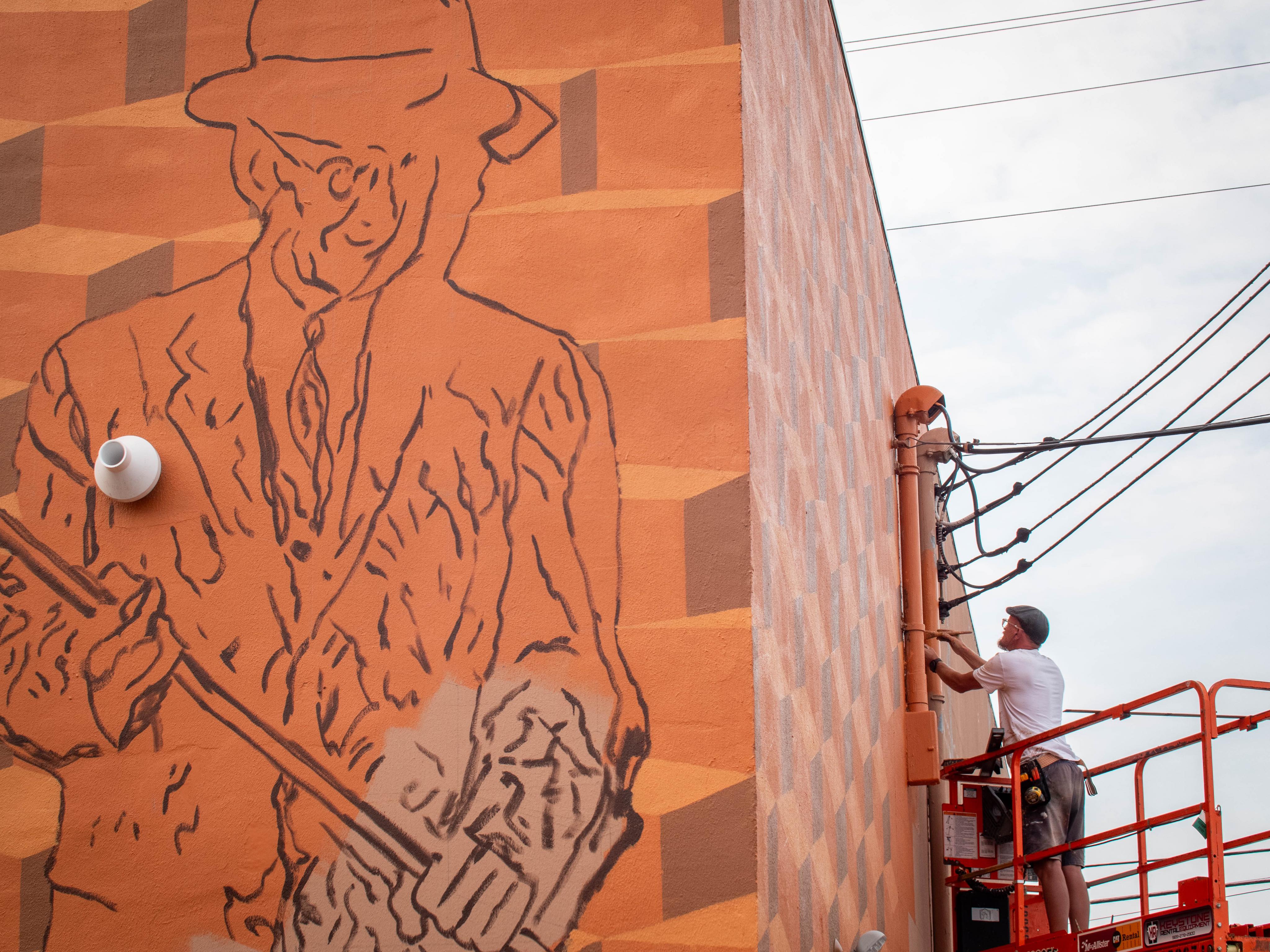The final mural of this year’s project will be painted on the back section of Noise & Toys (117 N. Second Ave) by Chicago-based artist Michael Ferrarell (@lefthandedwave). Ferrarell studied screen-printing at the University of Kentucky and after graduating, honed in on his craft of silk screen printing. At that time, he also took his street art from New York City to Los Angeles and numerous major cities in between.