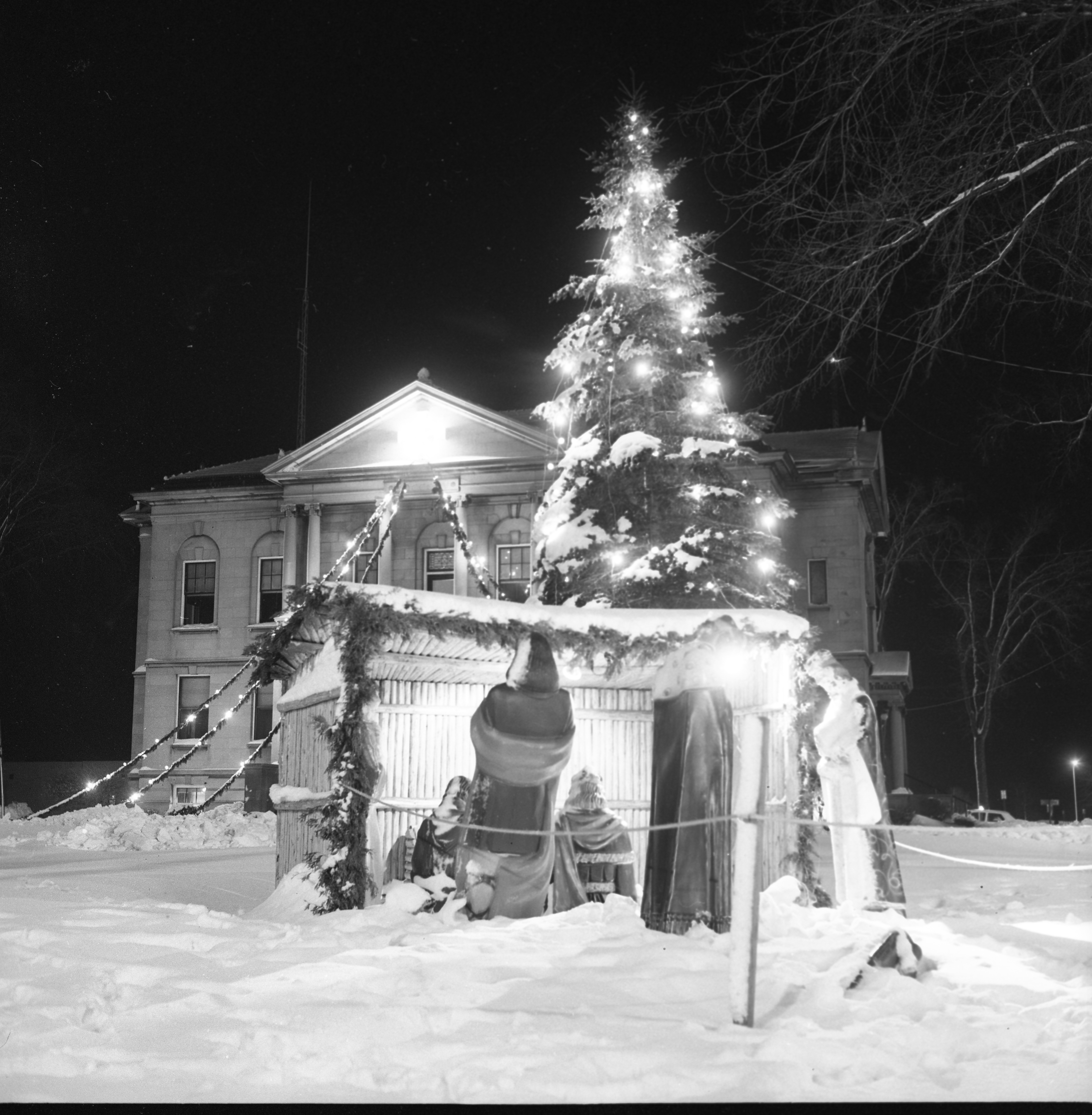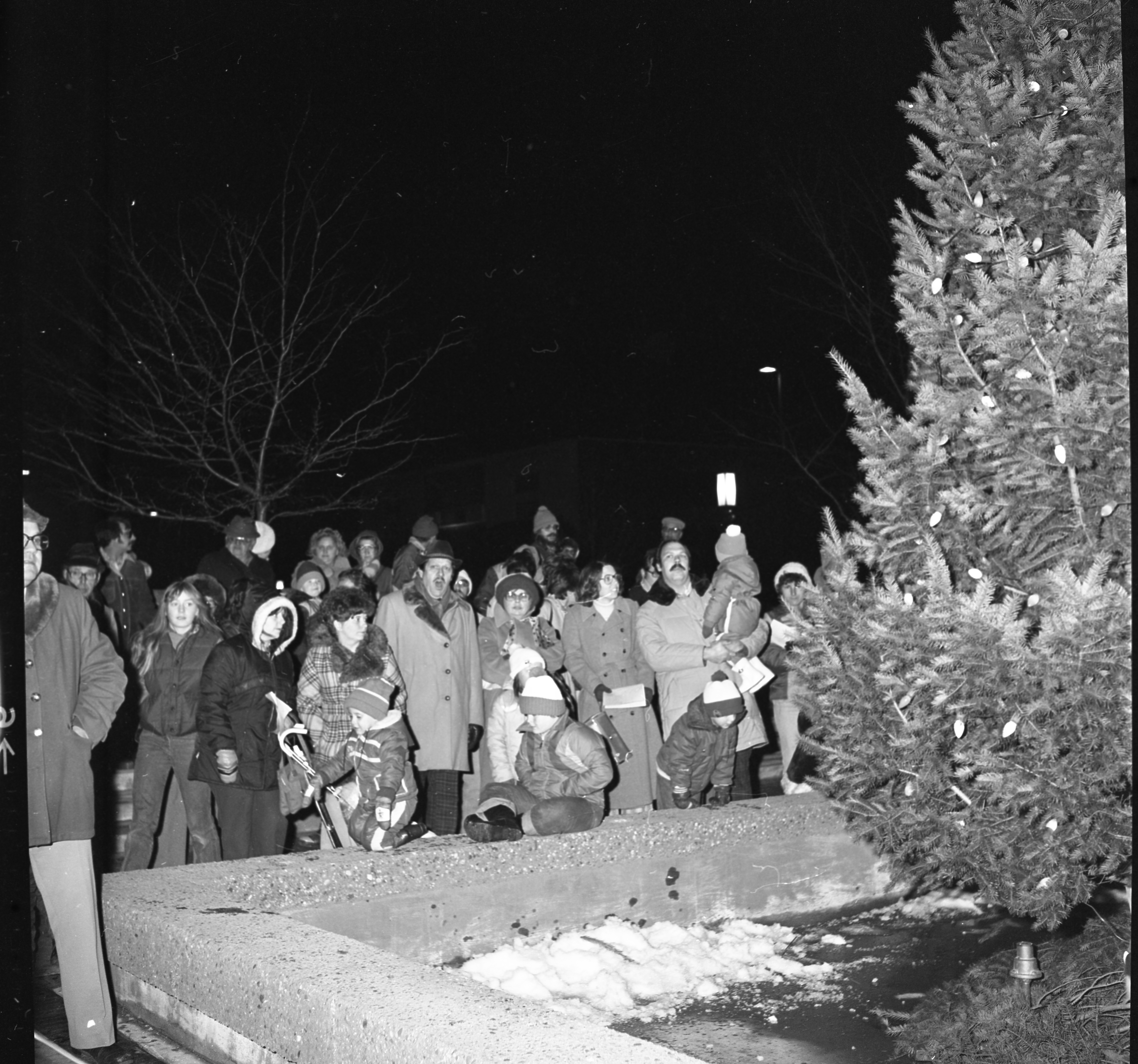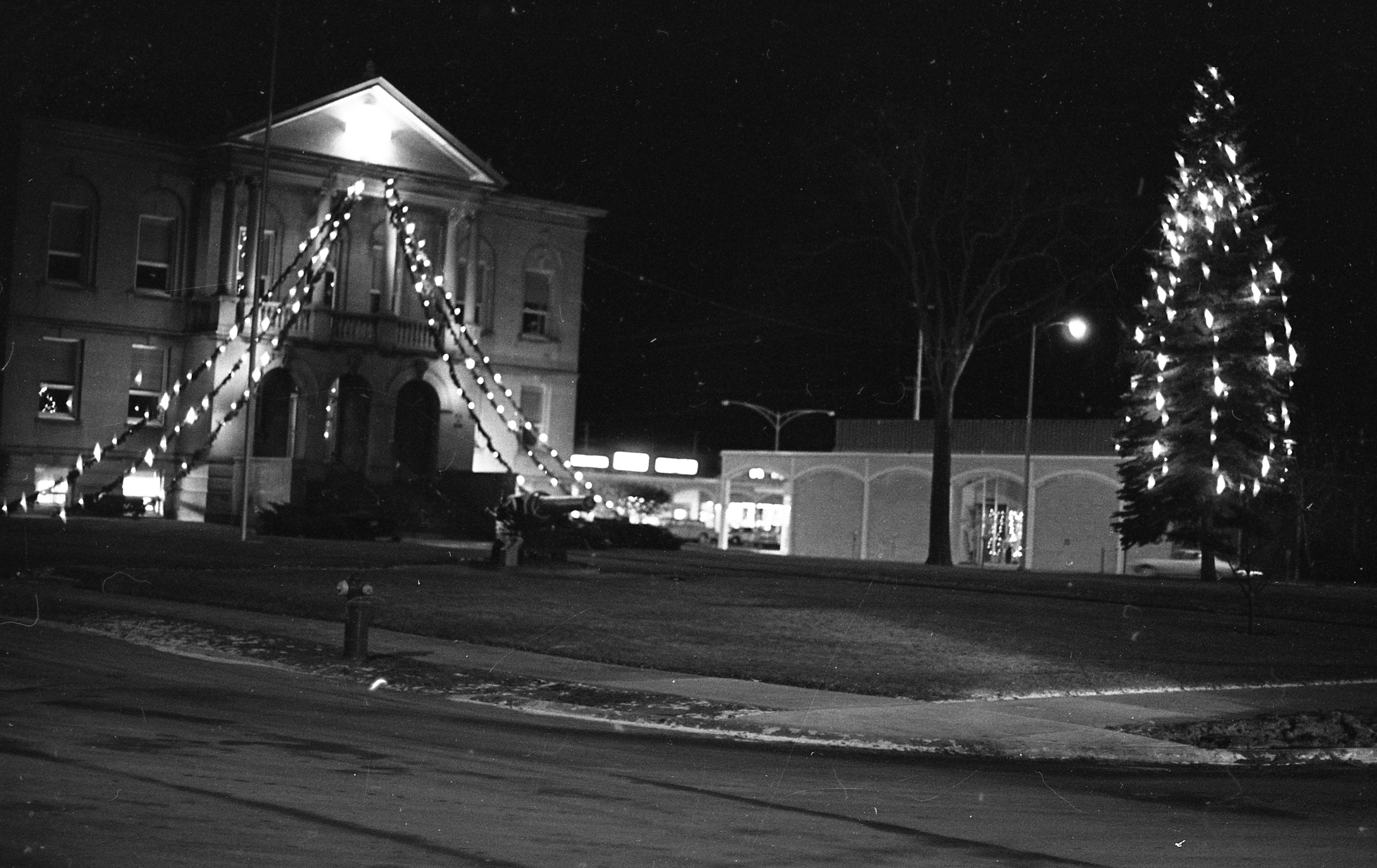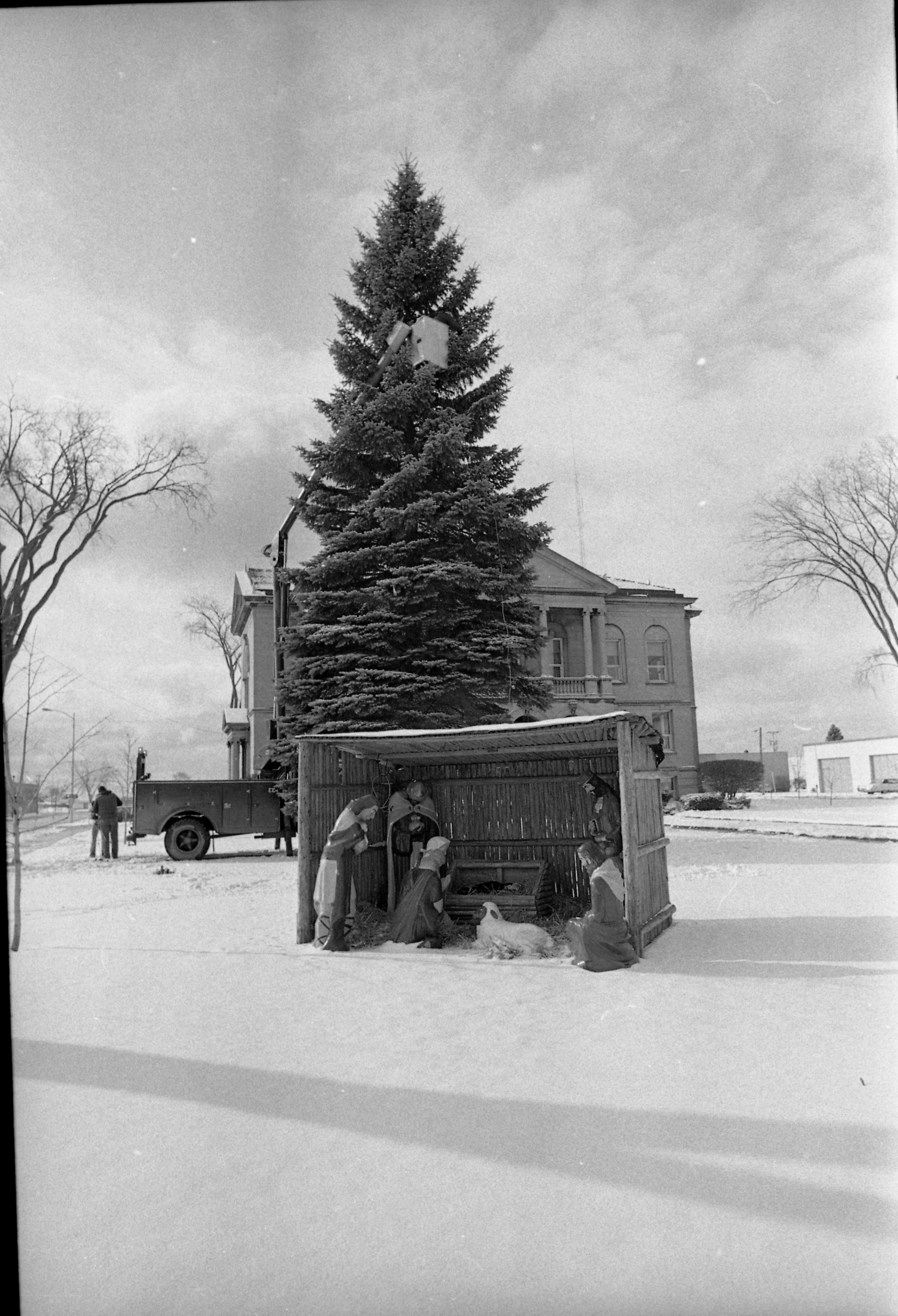 First year the Christmas Tree was put in Culligan Plaza 1980, second photo taken 1982, credits to George R. and Edith Angell Cook Special Collections Alpena County George N. Fletcher Public Library